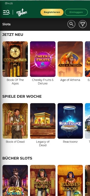 MrGreen Casino ist eine renommierte Online-Gaming-Plattform, die eine große Auswahl an Casinospielen anbietet, darunter Spielautomaten, Tischspiele, Live-Casinospiele und mehr. Unsere Auswahl umfasst beliebte Titel wie Starburst, Mega Moolah und Blackjack sowie Live-Dealer-Spiele wie Live Roulette und Live Baccarat.